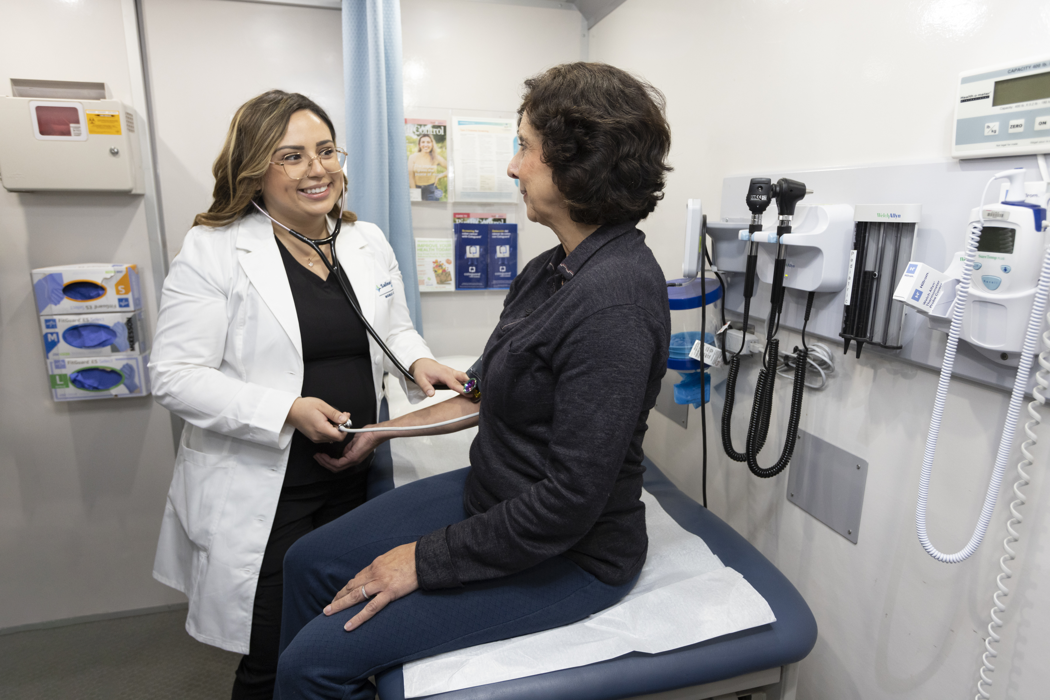 Our mobile clinic is a state-of-the-art 40-foot vehicle featuring two exam rooms, Wi-Fi and laboratory capabilities, and educational functionality. It is staffed with a Nurse Practitioner