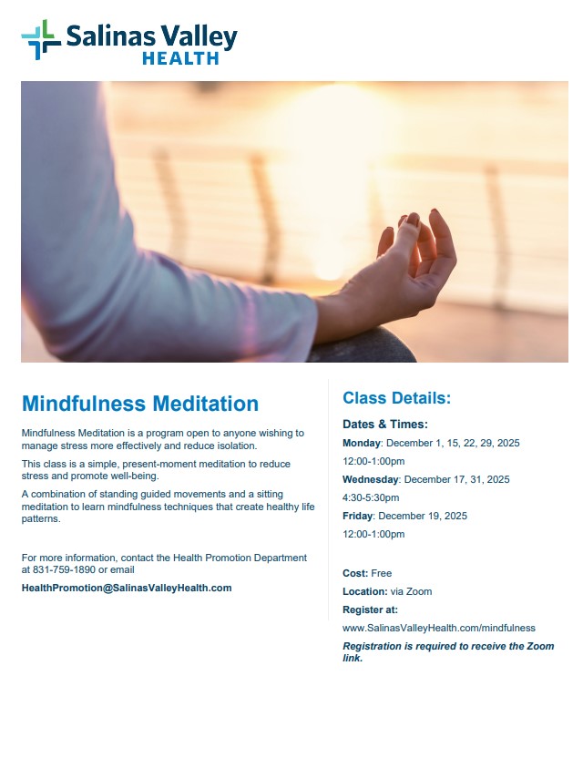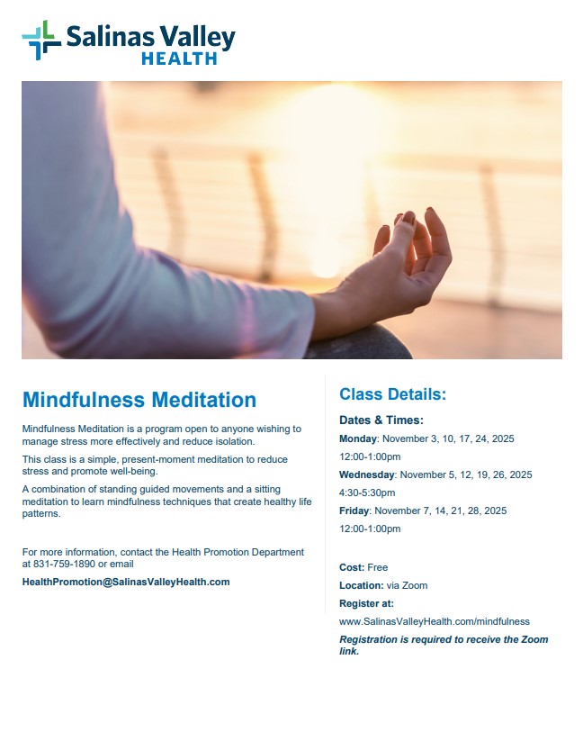 Questions? Please contact Salinas Valley Health, Health Promotion Department at 831-759-1890 or email HealthPromotion@SalinasValleyHealth.com