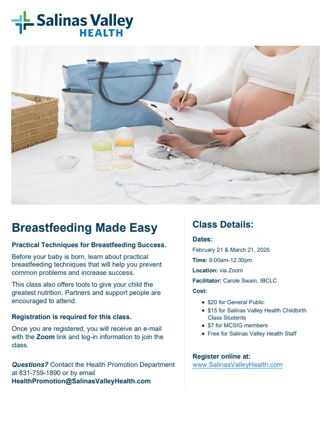 Breastfeeding Made Easy - Salinas Valley Health Childbirth Class Students-via ZOOM