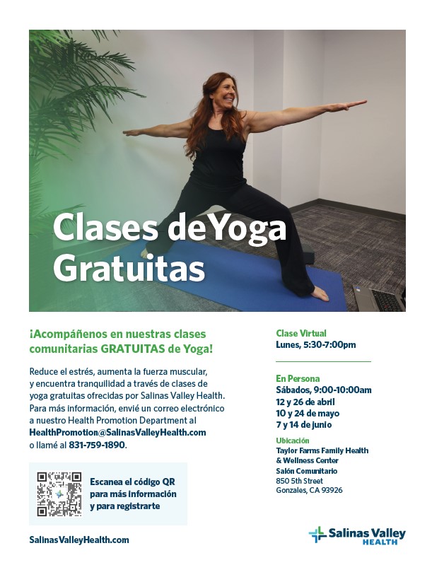 For more information please contact the Health Promotion Dept. at HealthPromotion@SalinasValleyHealth.com or 831-759-1890.