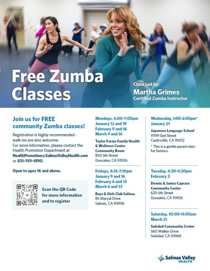 For more information, please contact the Health Promotion Dept. at 831-759-1890 or HealthPromotion@SalinasValleyHealth.com