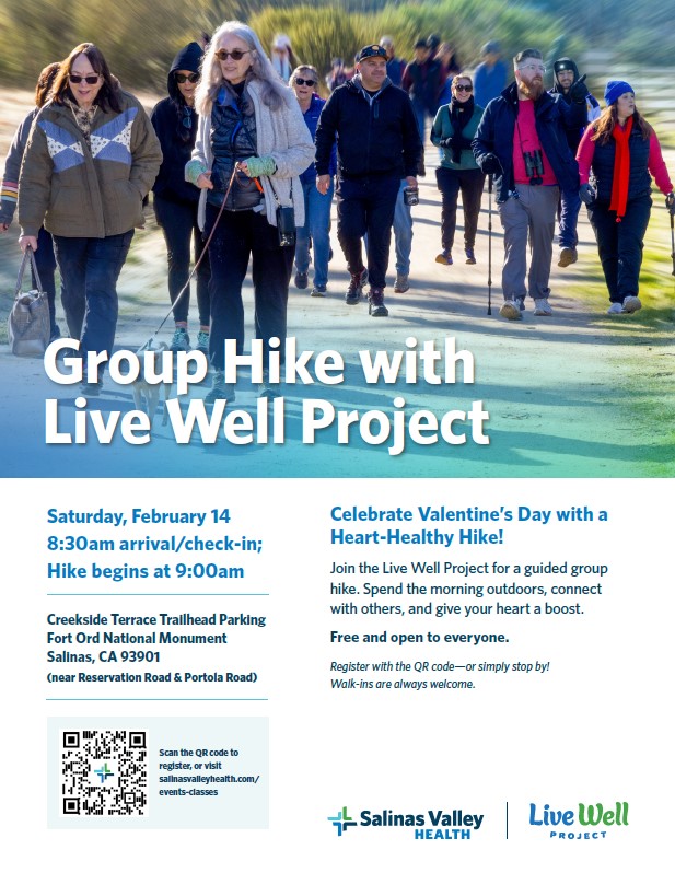 To register click on the link: https://svmh.wufoo.com/forms/group-hike-with-live-well-project/