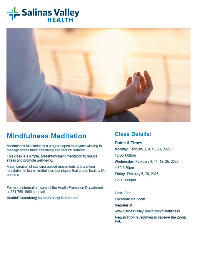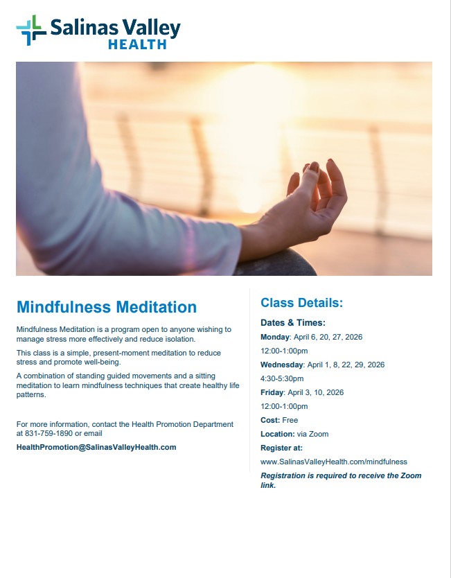 Questions? Please contact Salinas Valley Health, Health Promotion Department at 831-759-1890 or email HealthPromotion@SalinasValleyHealth.com