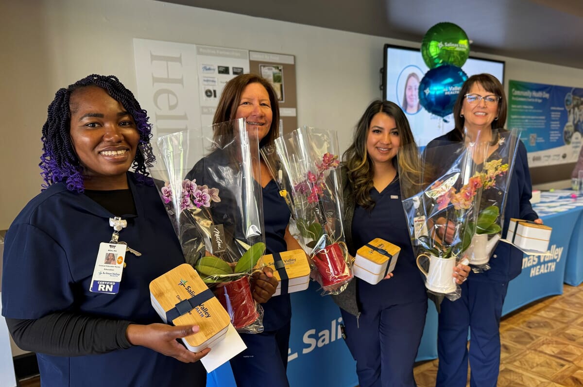 The photo in this news release is a picture of four Certified Nurses at Salinas Valley health picking up their gifts.