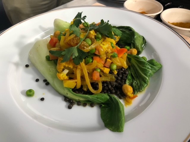 3. Add in the tomato, garbanzo beans, raisins, and the remaining broth, cover and cook for another 10 minutes.