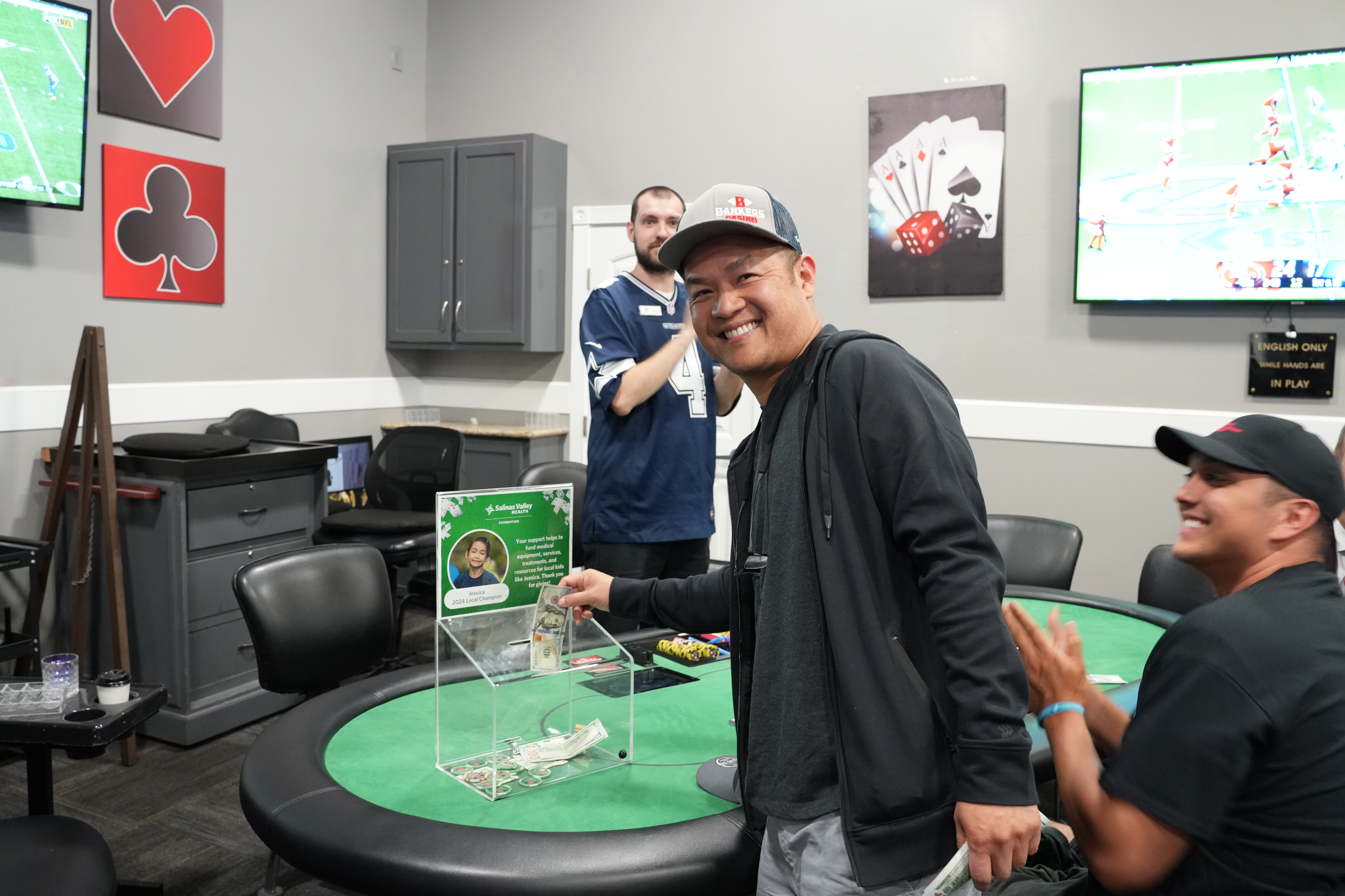 We are grateful to every player who joined the fun and contributed to the successful fundraising event. The crowd included a mix of Salinas Valley Health employees and medical staff, regular Bankers Casino poker players, newcomers, and friends of the Foundation. A special thank you to Rick Hattori and his Omaha Poker group for connecting us to Bankers Casino, and for being among the first to sign up to play in the tournament. Rick is a regular at Bankers Casino, and the grandfather of the 2024 local Children’s Miracle Network Hospitals Champion, Jessica.