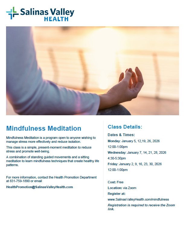 Questions? Please contact Salinas Valley Health, Health Promotion Department at 831-759-1890 or email HealthPromotion@SalinasValleyHealth.com